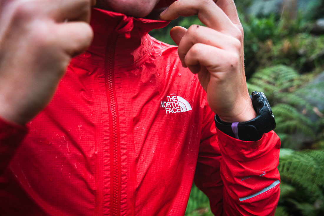 Again, The North Face has won me over with the colour and style of their trail running performance range. Straight out of the box I was in love with the red colour of the women’s version of the First Dawn Packable Jacket (the men’s comes in black). The colour, which is not quite red, but is so close there isn’t really any other colour to call it, is a lot more impressive when you see the jacket in real life compared to the online photos. It’s really bright and together with the reflective strips on the arms, cars will not miss you when running in low light and rain.