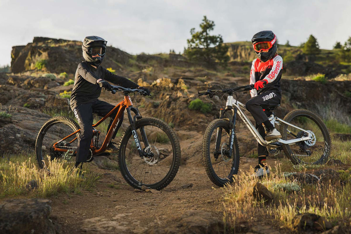 This all-new trail bike features a lightweight ALUXX SL aluminium frame with FlexPoint rear suspension and a Giant Crest FloTrac Lite shock that delivers 135mm of fully active travel to help kids level up their trail-riding capabilities. Up front, the new Giant Crest SL FloTune Lite fork handles rocks, roots and ruts with smooth efficiency. A youth-specific Giant TRA WheelSystem (27.5-inch front and 26-inch rear) balances agility and stable handling, helping kids make the leap from neighbourhood rides and pump tracks to more challenging singletrack terrain. A dropper seatpost, shorter cranks and cockpit controls designed for small hands all add up to greater control and confidence.