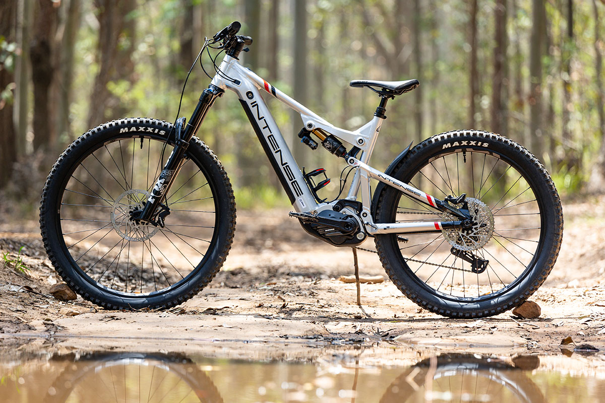 Intense promise to reduce trail chatter with its integrated FLAK GUARDS and an overhauled TRP derailleur with an upgraded clutch that reduces chain slap and creates a whisper-quiet shifting system. There’s also an integrated mini front and rear mudguard to keep things running grit-free. Tyre choice out of the box is a set of tubeless Maxxis Minion DHR II 3C EXO+ tyres.
