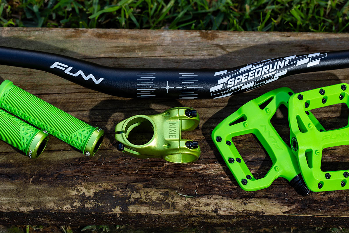 The Junior Kit comprises handlebars, pedals, stems, and grips. All have been designed for smaller hands and feet to suit junior riders without having to adjust or grow into the components. They have been designed to provide confidence for the smaller riders as well as inexperienced or beginner riders to get to grips with their bike and the trails without unnecessary risk of using larger components cut down to size. In a nutshell, the FUNN Junior Kit has been specifically created for children.